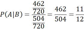 Wypisz wszystkie zdarzenia sprzyjające podanym oraz oblicz ich ilość oraz ilość wszystkich zdarzeń elementarnych. Następnie skorzystaj ze wzoru na prawdopodobieństwo zdarzenia A pod warunkiem, że zaszło zdarzenie B: