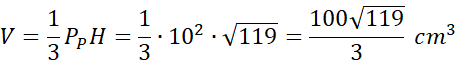 Wyznacz objętość ostrosłupa prawidłowego czworokątnego, w którym ściana boczna ostrosłupa jest trójkątem równoramiennym, w którym ramiona mają długość 13 cm i tworzą kąt