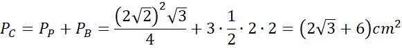 Następnie wyznacz pole całkowite bryły, zauważ, że w podstawie jest trójkąt równoboczny, którego pole można obliczyć ze wzoru