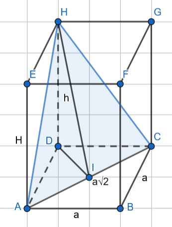 Oblicz objętość graniastosłupa prawidłowego czworokątnego, którego podstawa ma pole równe 50 cm2, a przekrój tego graniastosłupa płaszczyzną przechodzącą przez przekątną dolnej podstawy i jeden z wierzchołków górnej podstawy jest trójkątem o polu równym 65 cm2.