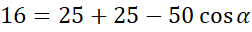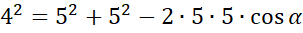 Oblicz wartość cosinusa kąta między ramionami kąta trójkąta równoramiennego o podstawie 4 cm i ramionach 5 cm.
