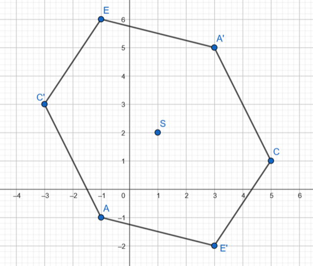 Zaznacz podane punkty w układzie współrzędnych i odbij je względem środka symetrii.