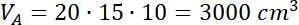 Oblicz objętość wody w akwariach A i B. Zauważ, że różnica objętości będzie stanowiła objętość kamienia.