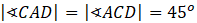 , to trójkąt ACD jest równoramienny prostokątny. Więc kąty przy podstawie są równe.