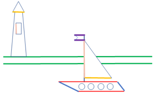 Taki samymi kolorami zaznaczono na rysunku równoległe pary odcinków. Odcinki równoległe to takie odcinki, które gdyby nawet zostały przedłużone, to nigdy się nie przetną.