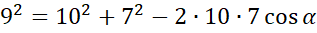 Wyznacz cosinusy kątów trójkąta o danych długościach boków. 9, 10, 7.