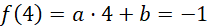 Najpierw policz wzór funkcji, która przechodzi przez podane punkty. Skorzystaj z wiedzy, że skoro te dwa punkty należą do wykresu funkcji, to wartość tej funkcji dla współrzędnej x będzie równa współrzędnej y dla każdego z punktów. Skorzystaj również z wzoru ogólnego funkcji i policz współczynniki a i b korzystając z układu równań.
