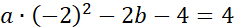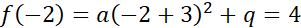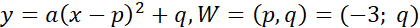 Podstaw współrzędne punktów znajdujących się na paraboli, aby obliczyć wartości współczynników a i b. Wykorzystaj postać kanoniczną podanej funkcji i jej zależność ze współrzędnymi wierzchołka paraboli.