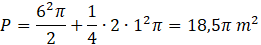 Pole, na którym pasie się koza, ma kształt półokręgu o promieniu 6 m oraz dwóch ćwiartek o promieniu 1 m, oblicz pola tych wycinków koła.