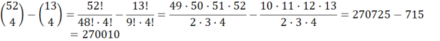 Ile jest możliwości wylosowania czterech kart z talii 52 kart tak, aby były wśród nich były maksymalnie trzy kiery?
