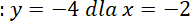 Znajdź najmniejszą i największą wartość funkcji, a później oblicz iloczyn argumentów, dla których funkcja przyjmuje te wartości. Funkcja przyjmuje najmniejszą wartość dla argumentu x = -2. Funkcja przyjmuje największą wartość dla argumentu x = 1. Iloczyn liczb -2 i 1 wynosi -2.