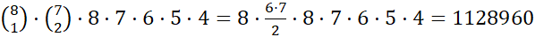 Należy podać, ile możesz utworzyć ciągów ośmioelementowych, mając do dyspozycji 10 cyfr w taki sposób, aby jeden wyraz był równy 1, dwa były równe 2, a pozostałe różne od siebie.