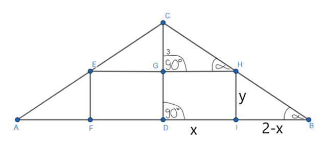 W tym zadaniu musisz wyznaczyć, jakie wymiary powinien mieć obrus, aby jego pole powierzchni było jak największe. Obrus został wycięty z płótna o kształcie trójkąta równoramiennego. Jego podstawa ma 4 m i wysokość opuszczoną na tę podstawę jest równa 3 m