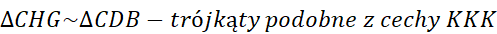 Zauważ, że trójkąty CHG i CDB są podobne z cechy kkk. Skorzystaj z podobieństwa tych trójkątów, aby wyznaczyć zależność x od y. Wyznacz wartość y w zależności od x. Zapisz wzór na pole serwetki. Po ułożeniu wzoru na pole serwetki zauważ, że współczynnik,
