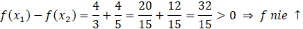 Z podpunktów a) i b) wiadomo, że funkcja f jest rosnąca w każdym z dwóch przedziałów