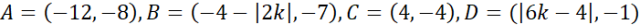 Znajdź takie wartości k, dla których wszystkie cztery punkty będą znajdowały się na jednej osi w układzie współrzędnych.