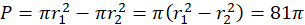 Zauważ, że połowa zaznaczonej cięciwy tworzy trójkąt prostokątny z oboma promieniami. Skorzystaj z twierdzenia Pitagorasa, aby obliczyć różnicę kwadratów tych promieni. Użyj tej różnicy do obliczenia pola pierścienia.