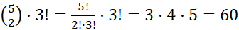 Masz do wykorzystania pięć liter, przy czym litera T występuje dwukrotnie. Tworzysz więc 5-elementowy ciąg liter. W pierwszej kolejności losujesz dwa miejsca z pięciu dostępnych dla obu liter T. Nieużyte dotąd litery możesz rozmieścić na 3! sposoby. Łącznie możesz więc utworzyć