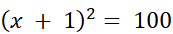 Przenieś wyrażenie w nawiasie na jedną stronę równania i 100 na drugą stronę równania. Spierwiastkuj równanie obustronnie i zapisz rozwiązania równania.