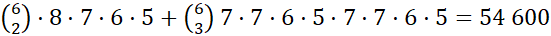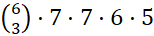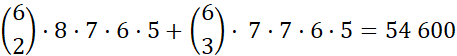 Drugi przypadek to ten, gdy 2 nie stoi na pierwszym miejscu oraz cyfra dziesiątek jest równa 7. Wówczas musisz wybrać trzy z sześciu dostępnych miejsc na trzech cyfr 2, a pozostałe cyfry to różne cyfry ze zbioru {0,1,3,4,5,6,8,9}. Pamiętajmy jednak, że na pierwszym miejscu nie może stać cyfra 0. W tym przypadku dostajesz więc