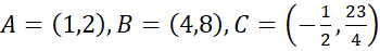 Wyznacz pole trójkąta ABC o podanych wierzchołkach.