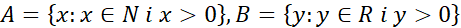Porównano elementy występujące w obu zbiorach i stwierdzono, że zbiór A zawiera się w zbiorze B, ponieważ wszystkie liczby naturalne są również liczbami rzeczywistymi.