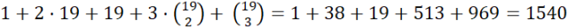 Ostatni przypadek to ten, kiedy masz cztery 1. Losujesz wówczas trzy miejsca z dziewiętnastu dla pozostałych miejsc, czyli masz