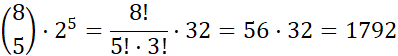 Masz 8 kolorów, więc wybierasz 5 kolorów skarpetek z dostępnych. Ponadto każdego koloru są po dwie skarpetki, więc każdy z wybranych kolorów możesz wybrać na dwa sposoby. Łącznie masz