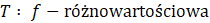 Aby udowodnić, że funkcja jest różnowartościowa, musisz pokazać, że dla dwóch różnych argumentów ich wartości także są równe, czyli musi zajść warunek: