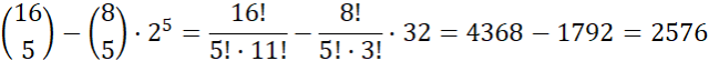 W szufladzie jest 8 par skarpetek w różnych kolorach. Należy podać, na ile sposobów można wybrać 5 skarpetek tak, aby była wśród nich co najmniej jedna para.