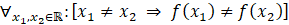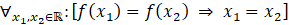 Możesz skorzystać z drugiej definicji funkcji różnowartościowej, mówiącej, że jeśli wartości funkcji dla dwóch argumentów są sobie równe, to wskazane argumenty muszą być jednakowe, czyli musi zajść warunek: