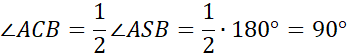 Kąt ACB jest wpisanym kątem na łuku AB, więc: