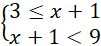 Zbiór rozwiązań podanej podwójnej nierówności w postaci przedziału: