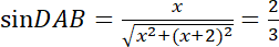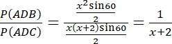 . Korzystając ze wzoru na pole trójkąta, który znamy długość boku i miarę kąta naprzeciwko temu bokowi, możemy obliczyć stosunek tych pól, co daje nam równanie z jedną niewiadomą,