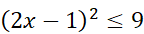 Przenieś wyrażenie w nawiasie podniesiona do kwadratu na jedną stronę nierówności i 9 na druga stronę nierówności. Spierwiastkuj nierówność obustronnie. Skorzystaj z własności wartości bezwzględnej, aby wyznaczyć zbiór rozwiązań nierówności.