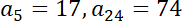 stojących między wyrazem piątym wynoszącym 17 a wyrazem dwudziestym czwartym, który jest