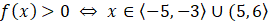 Funkcja przyjmuje wartości dodatnie, gdy jej wykres przechodzi nad osią OX.