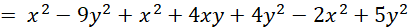 Pamiętaj o kolejności wykonywania działań – potęgowanie robimy przed mnożeniem. Wykonaj potęgowanie, opuść nawiasy, a następnie zredukuj wyrazy podobne. Pamiętaj również, że pomijając nawias mający przed sobą minus, zmieniamy znaki każdego z elementów znajdujących się wewnątrz nawiasu. Kiedy już uprościsz działanie, podstaw za x i y ich wartości. Skorzystaj z zależności