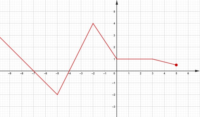 Rozwiązanie przedstawia przykładowy szkic wykresu funkcji, która spełnia warunki zadania.