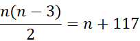 Przyrównaj liczbę przekątnych w wielokącie do liczby jego boków powiększonych o 117. Oblicz n i zapisz liczbę boków wielokąta.
