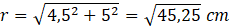 Wyznacz promień, pole i obwód koła, w którym cięciwa ma długość 9 cm, a odległość tej cięciwy od środka koła jest równa 5 cm.