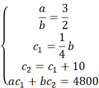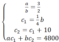 Kupiec posiada w swoim asortymencie dwie beczki wina różnych odmian. Proporcję ilości litrów wina z pierwszej beczki do ilości litrów wina z drugiej beczki wynosi 3:2. Cena jednego litra wina z pierwszej beczki wynosi tyle samo, co 25% wartości całego wina zgromadzonego w drugiej beczce. Warto zaznaczyć, że cena litra wina z drugiej beczki jest wyższa o 10 złotych w porównaniu do ceny litra wina z pierwszej beczki. Łączna wartość win wynosi 4800 twoim zadaniem jest określenie ile wina jest w każdej beczce