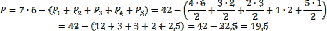 Zauważ, że aby obliczyć pole wystarczy od pola prostokąta złożonego ze wszystkich figur odjąć pola pozostałych figur poza czworokątem.