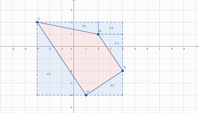 Konstrukcja dla czworokąta, aby obliczyć jego pole.