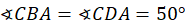 Zauważ, że odcinki CD i AB są średnicami, a kąt wpisany oparty na średnicy jest kątem prostym. Kąty CBA i CDA są kątami opartymi na tym samym łuku, są więc równe. Oblicz miarę kąta CAB, korzystając z sumy kątów w trójkącie.