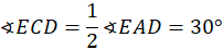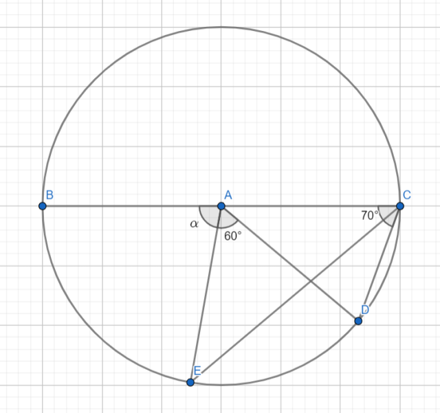 Zauważ, że kąt ECD jest równy połowie kąta EAD, a kąt BAE jest równy podwojonemu kątowi BCE (kąt środkowy i wpisany oparte na tym samym łuku).