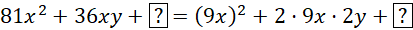 Rozbij podaną cześć wyrażenia, aby pasowała do któregoś z wzorów skróconego mnożenia. Jak już to zrobisz, zastanów się co musi się znajdować w miejscu