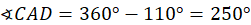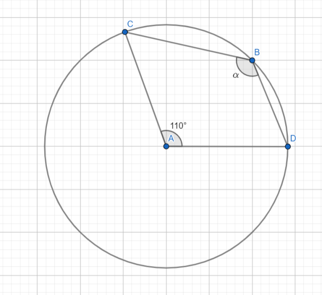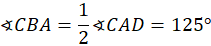 Zauważ, że szukany kąt CBA będzie połową kąta wklęsłego CAD (kąt środkowy i wpisany oparte na tym samym łuku).