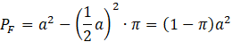 Oblicz pole kwadratu, a następnie odejmij od niego 4 ćwiartki koła.