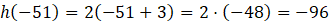 Wyznacz wartość funkcji h, która dla każdej liczby całkowitej przypisuje podwojoną sumę argumentu i liczby 3, dla argumentu -51.